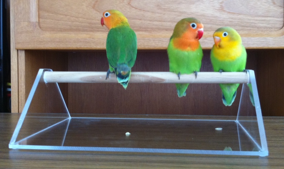 The acrylic perch stand is ideal for when tame birds are out of their cage. It has rubber stoppers to